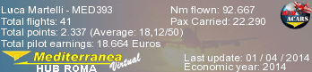 Salve a tutti, mi presento, sono Luca, appena approdato al volo on line e con grande piacere, di averlo fatto qui con voi,infatti colgo anche l'occasione per fare i complimenti all'organizzazione di mediterranea....veramente GRANDIIIII.....